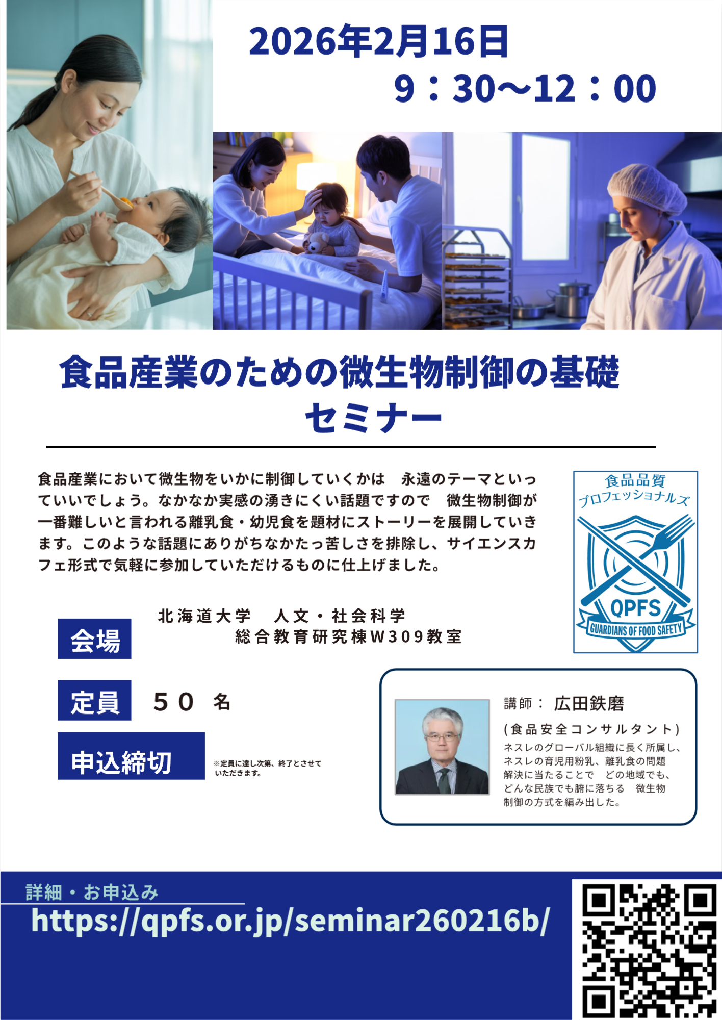 2026年2月16日 9:30~12:00 食品産業のための微生物制御の基礎[札幌]